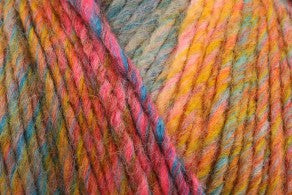 Sirdar Jewelspun With Wool is a cosy, self-striping, lightweight, machine-washable wool blend. The stripes appear as you knit, in the direction of your rows, and will appear narrower in a circular knit than in a pieced design. Sirdar Jewelspun With Wool has incredible meterage too; you can make a cosy hat and generous co-ordinating snood with just one ball.
